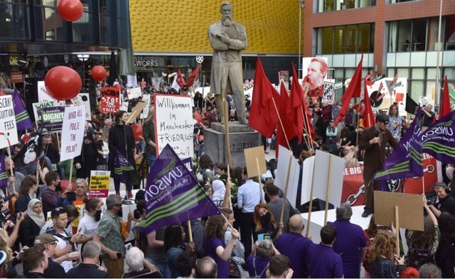 Friedrich Engels, co-founder of communist theory alongside his friend Karl Marx, spent twenty years in Manchester, the world’s first industrial city. A century after the 1917 October Revolution, which was inspired by their ideas, a decommissioned statue of Engels is recovered from a village in Eastern Ukraine, travelling across Europe to its new home in Manchester, where it is inaugurated by a crowd thousands. The film follows this unlikely journey, while drawing a parallel with the social conditions of 21st-century Britain. A visually striking mosaic of genres – including road movie, experimental broadcast and socialist mass gatherings – Ceremony reasserts the idea of communism not as a relic of the past, but as a visionary alternative to the tyranny of capital that continues to govern political, economic and emotional life today.
